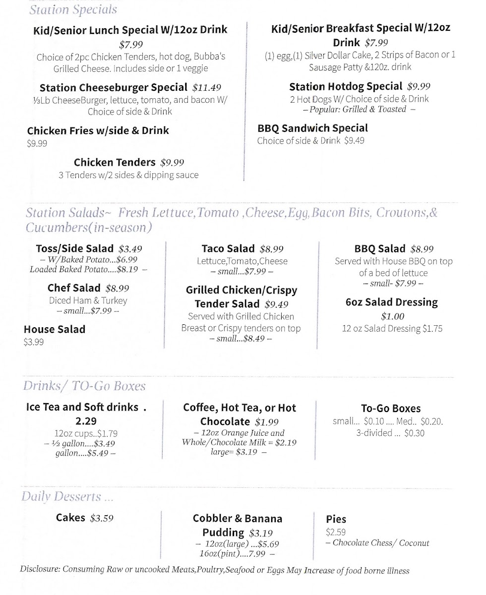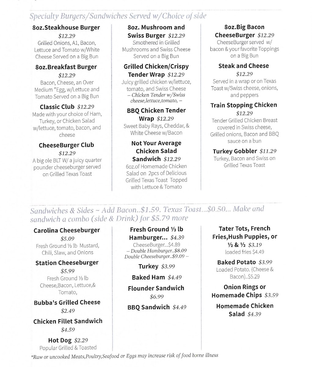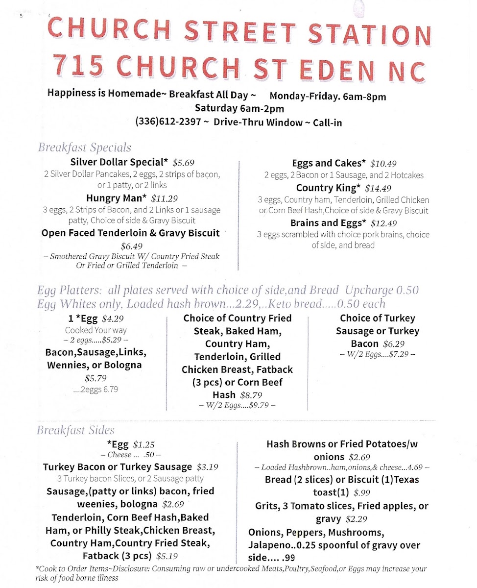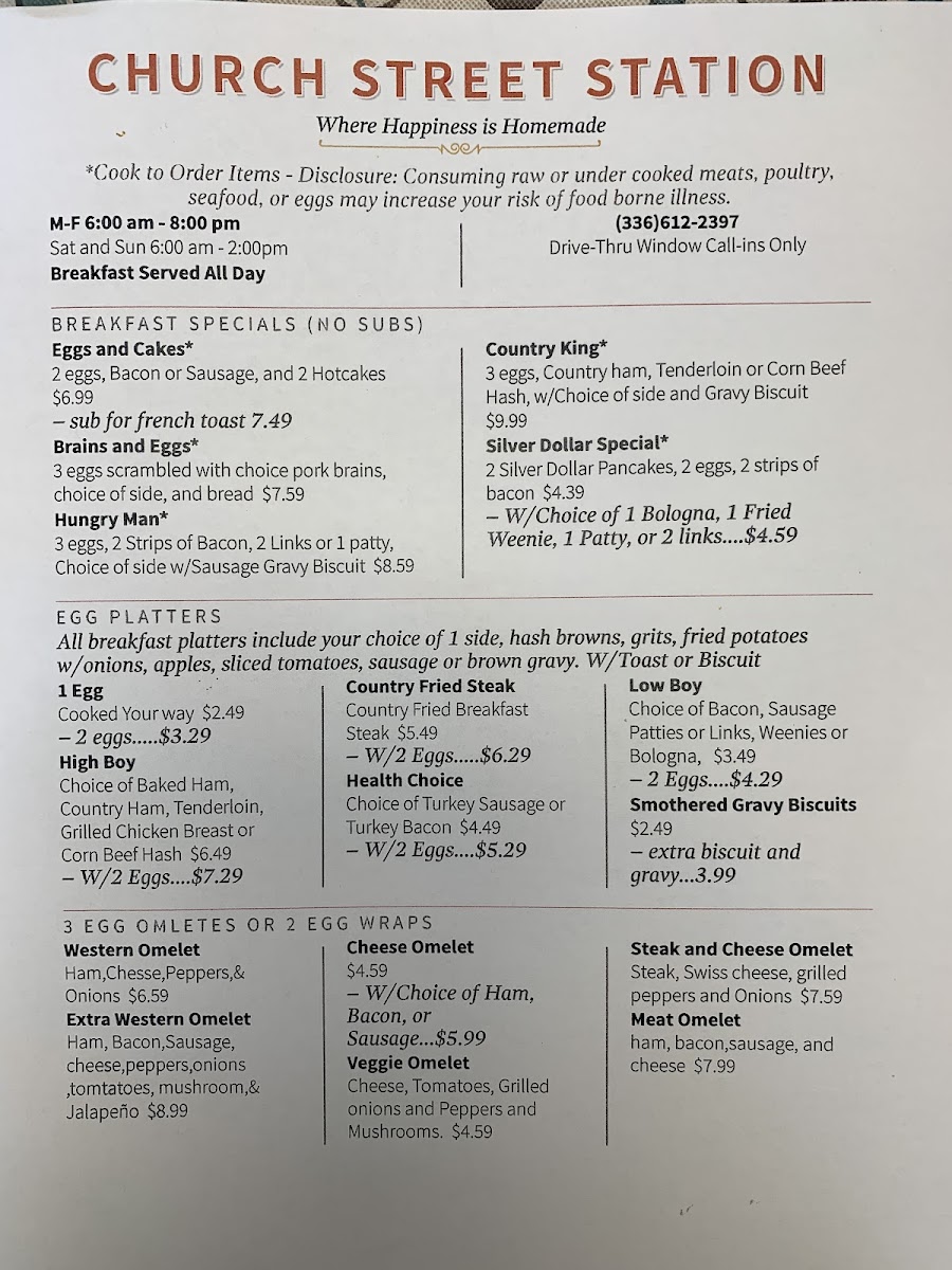 Church Street Station Menu